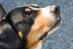 De Entlebucher Sennenhond is een middelgrote, compact gebouwde hond, iets langer dan hoog. Driekleurig zoals alle Sennenhonden. Opgewekte, schrandere en vriendelijke gelaatsuitdrukking.